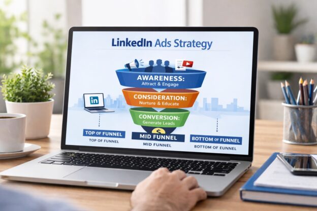 A full-funnel strategy on LinkedIn relies on clear funnel stages, correct campaign objectives, and deliberate ad sequencing. You build performance by aligning each LinkedIn campaign to buyer intent and moving prospects through the customer journey with control.